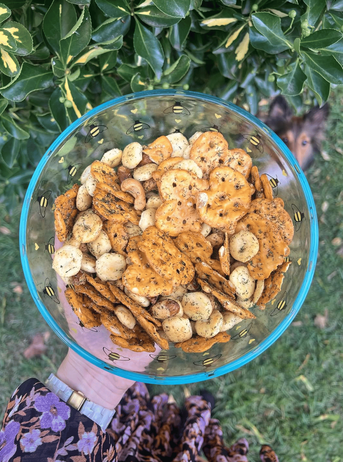 (I used pretzel thins, oyster crackers, and a nut mix—use whatever you love or have on hand)3 tbsp homemade ranch seasoning